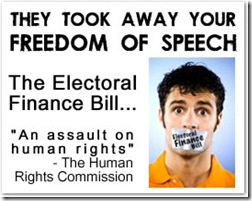 UPDATE: Speaking of intimidation, restraints on the freedom of expression and unfair and unfree elections -- all brought to you by Helen Clark's Electoral Finance Act -- the Electoral Commission is seeking advice whether political opinions expressed on personal websites is legal. I kid you not.