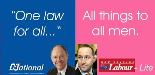 But the National party? What does the national Party stand for? Actually, it seems to stand for exactly the same thing as the Labour party if you examine their actions closely as some commentators do... but the tragedy is that the public of this poor benighted little backwater haven't got a clue what's going on.