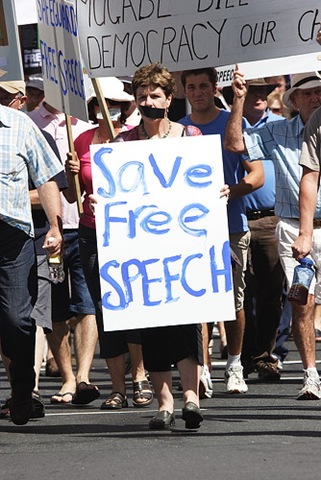 I'm just listening to a fascinating interview with law lecturer Bill Hodge, a constitutional expert from Auckland University, talking to Leighton Smith about why he headed out on Sunday to his first street protest since 1977: John Boscawen's third Auckland protest against the Electoral Finance Act. "Power corrupts," Hodge explained to Smith, "and I'm afraid power has corrupted the government... The government is trying to shut down debate."
