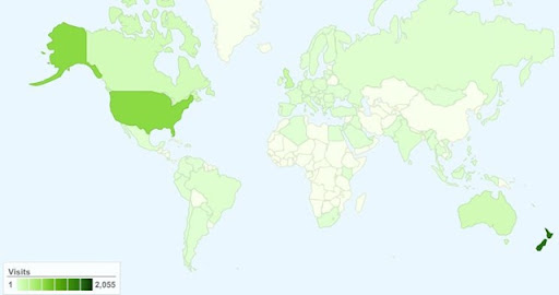 NZ, 50.5%; USA, 16.4%; Australia, 5.4%; UK, 5.2%; Canada, 2.4%; Italy, 1.7%; Sweden, 1.6%